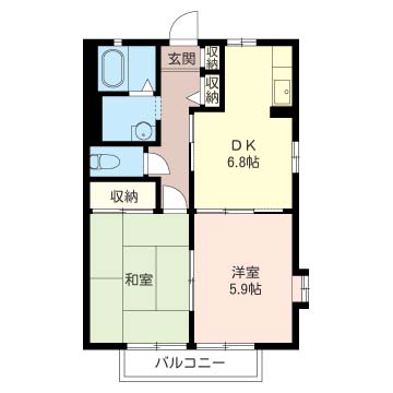 | 間取り/間取詳細 | 2DK/洋室5.9 和室5.9 DK6.8 ※1畳=1.62㎡ | ||